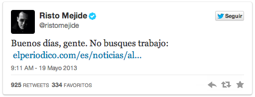 Risto Mejide publicó una de sus colaboración en El Periódico el 18 de mayo de 2013 titulada ‘No busques trabajo’.
